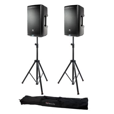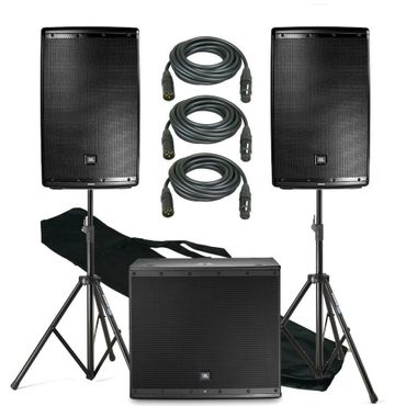The best option for large receptions, outdoor parties, and events wanting dance music with great bass. Includes a massive powered subwoofer.
