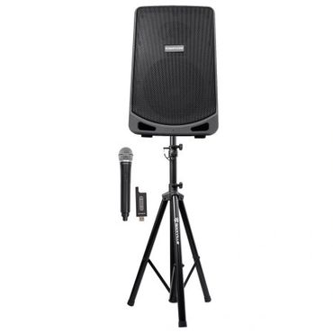 A portable and wireless PA speaker for outdoors and small venues, with a trained operator to handle music and announcements.